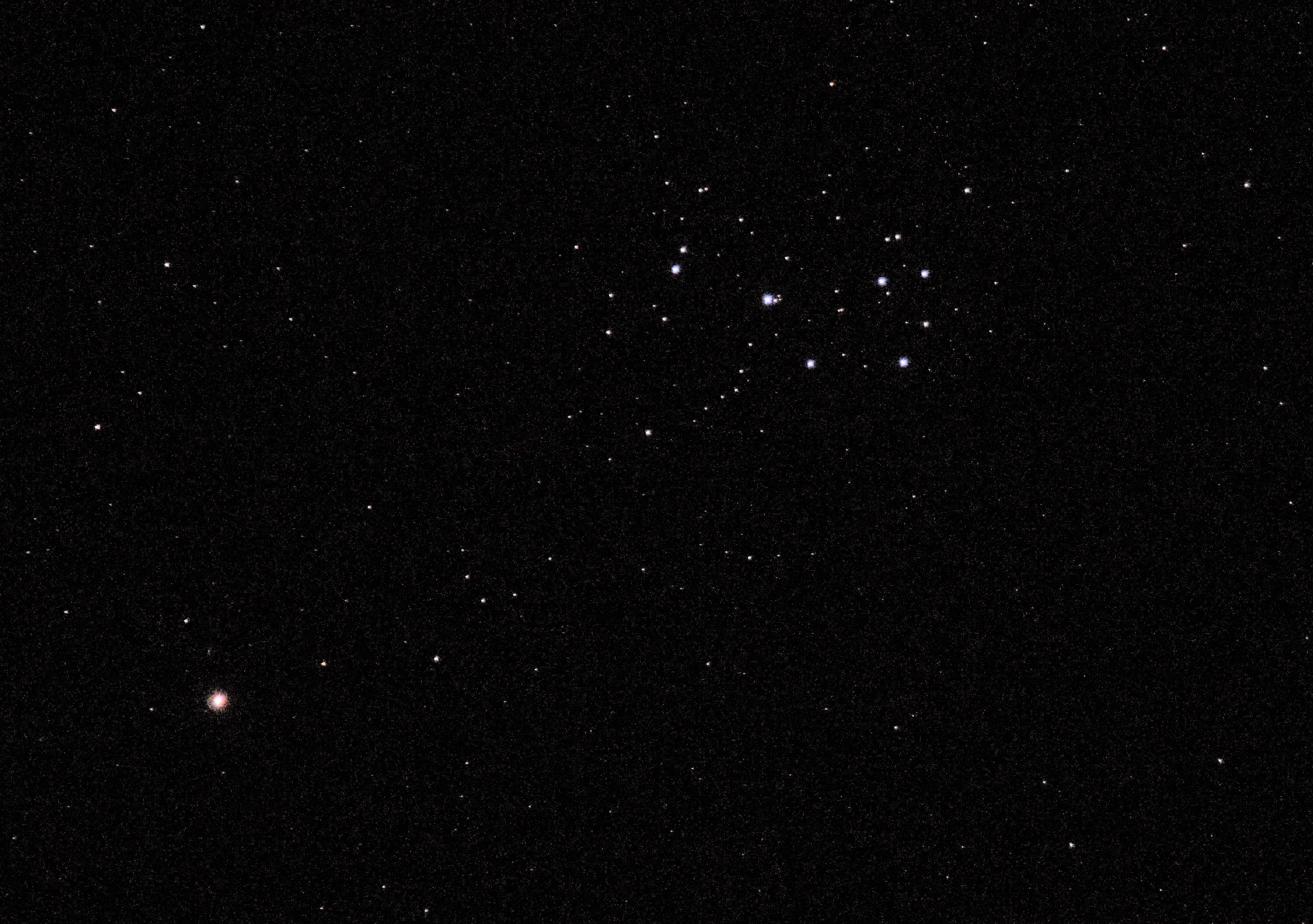 Henny Lykke var på Cassiopeia fredag d. 5. marts i 5 frostgrader og forevigede her Mars og Plejaderne med sit kamera.